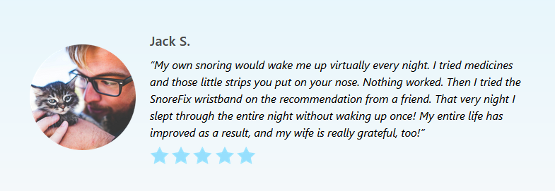 The SNOREFIX ANTI-SNORE WRISTBAND uses nerve stimulation to train the wearer to reflexively suppress snoring. And best of all, wearers experience no harmful side-effects or discomfort!